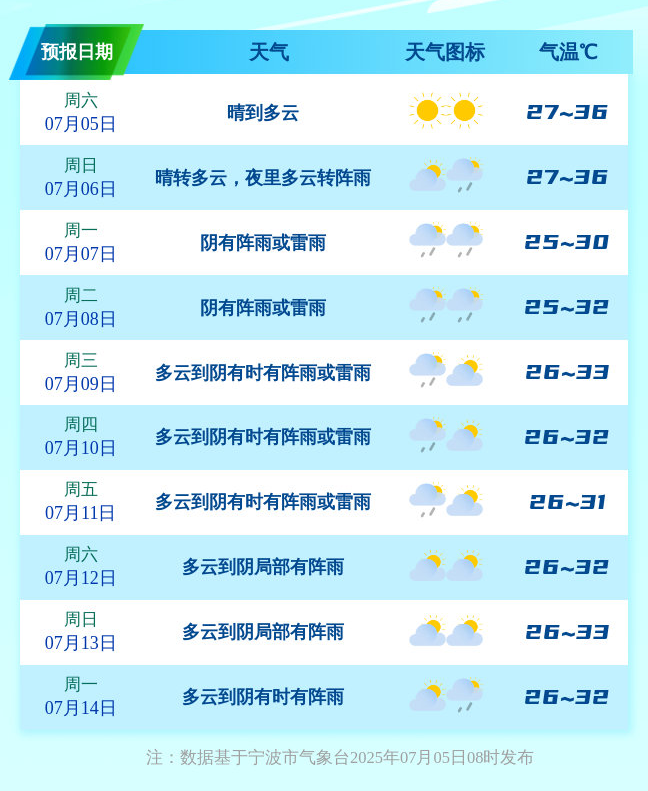 據寧波市氣象台預報,今天副高仍在堅守崗位,甬城繼續晴到多雲的好天氣,明天白天雲系將逐漸增多,但高温持續,夜裏則會轉為陣雨天氣,雙休日有出行和外出活動計劃的朋友請務必做好防暑防曬措施。