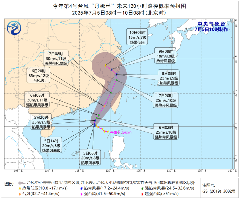 中央氣象台7月5日10時繼續發佈颱風藍色預警*:*