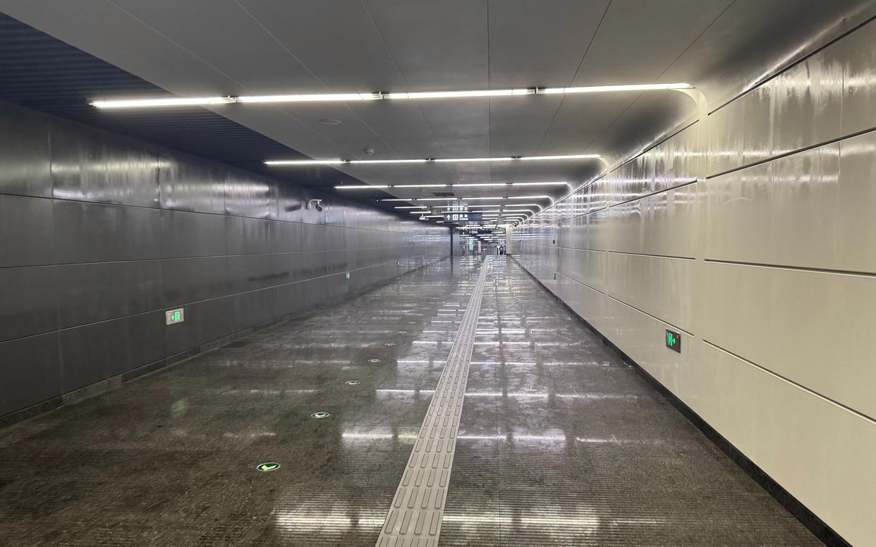 北京地鐵步行通道的牆壁上凝結出水珠。圖片來自微博網友。