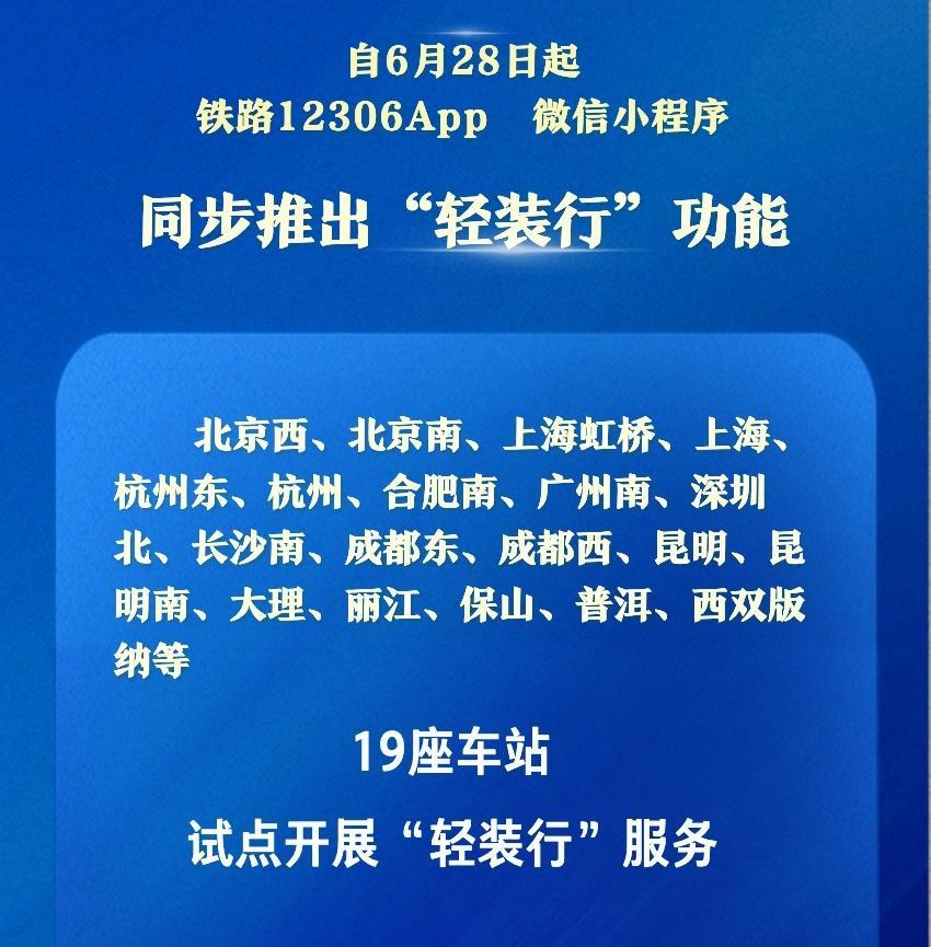 ■鐵路:推出“輕裝行”服務 全國19座車站試點