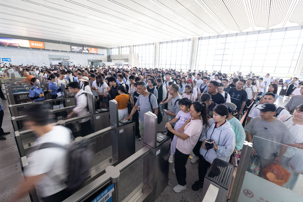 7月1日,旅客在浙江湖州站依次檢票進站。當日,全國鐵路實行新的列車運行圖,同時為期62天的2025年全國鐵路暑期運輸也拉開帷幕。 新華社發(伊凡攝)