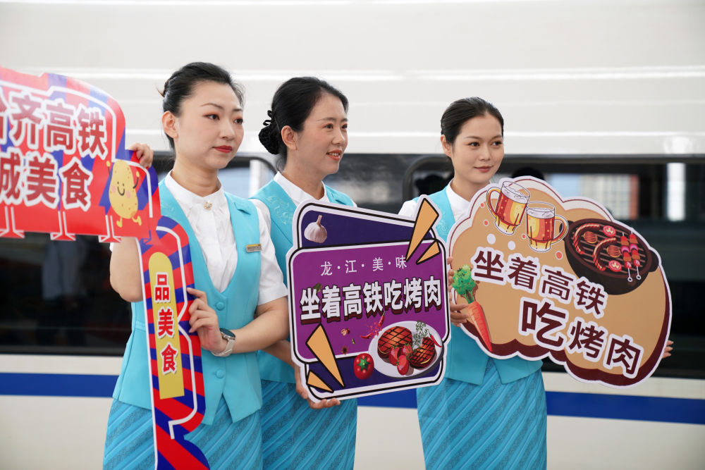 近期,在由哈爾濱西開往齊齊哈爾南的D6993次動車組列車上,中國鐵路哈爾濱局集團有限公司聯合黑龍江省文旅部門,開展齊齊哈爾烤肉美食文化體驗活動。東北特色餐飲產品進入高鐵列車,讓遊客在旅途中打開味蕾,感受齊齊哈爾烤肉獨特的風味。