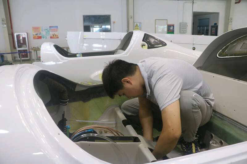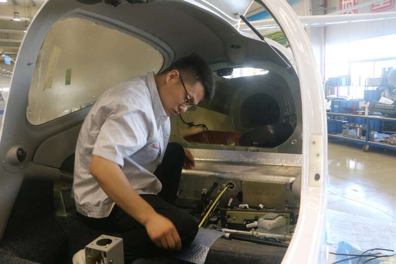 祁晨昊在機身內進行裝配。中青報·中青網記者 王海涵/攝