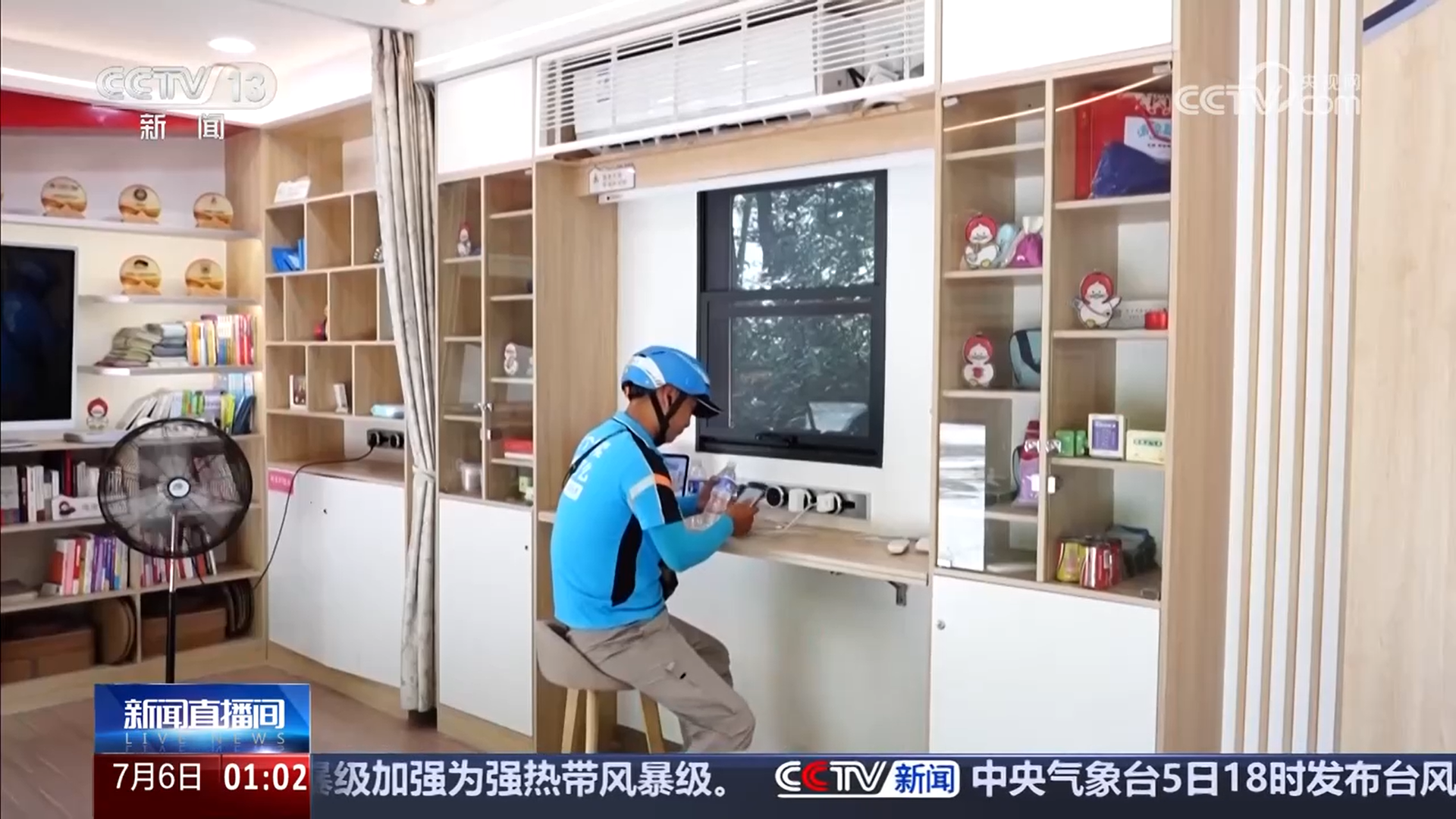 在江西吉安永新縣,當地打造的“智能工會驛站”,成了環衞工人、快遞小哥、外賣騎手等户外勞動者的“清涼港灣”。