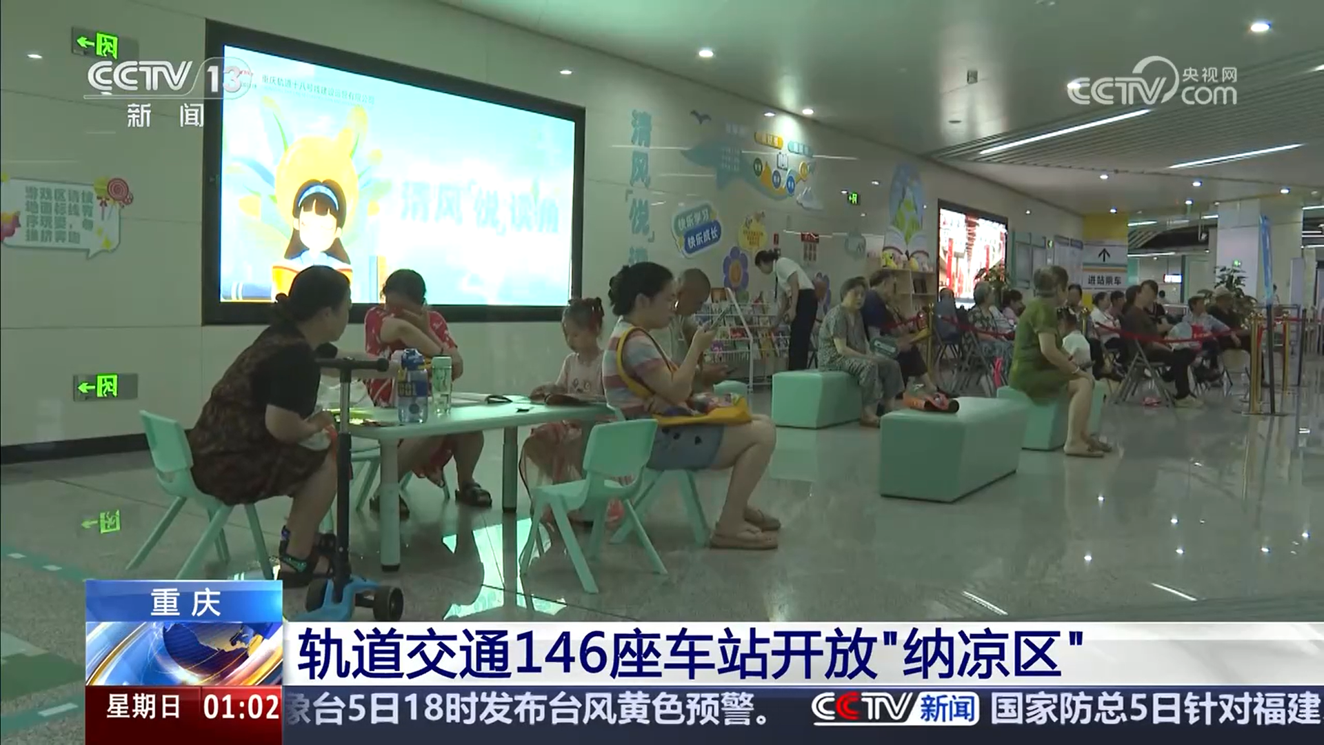 在重慶,7月4日起,146座軌道交通車站為公眾開放了納涼區,相較於去年新增了6座車站,各站點都配備了急救箱和各類防暑降温用品。暑期來臨,納涼區還專門設置了閲讀教育區、互動遊戲區、環保教育區等主題區域。