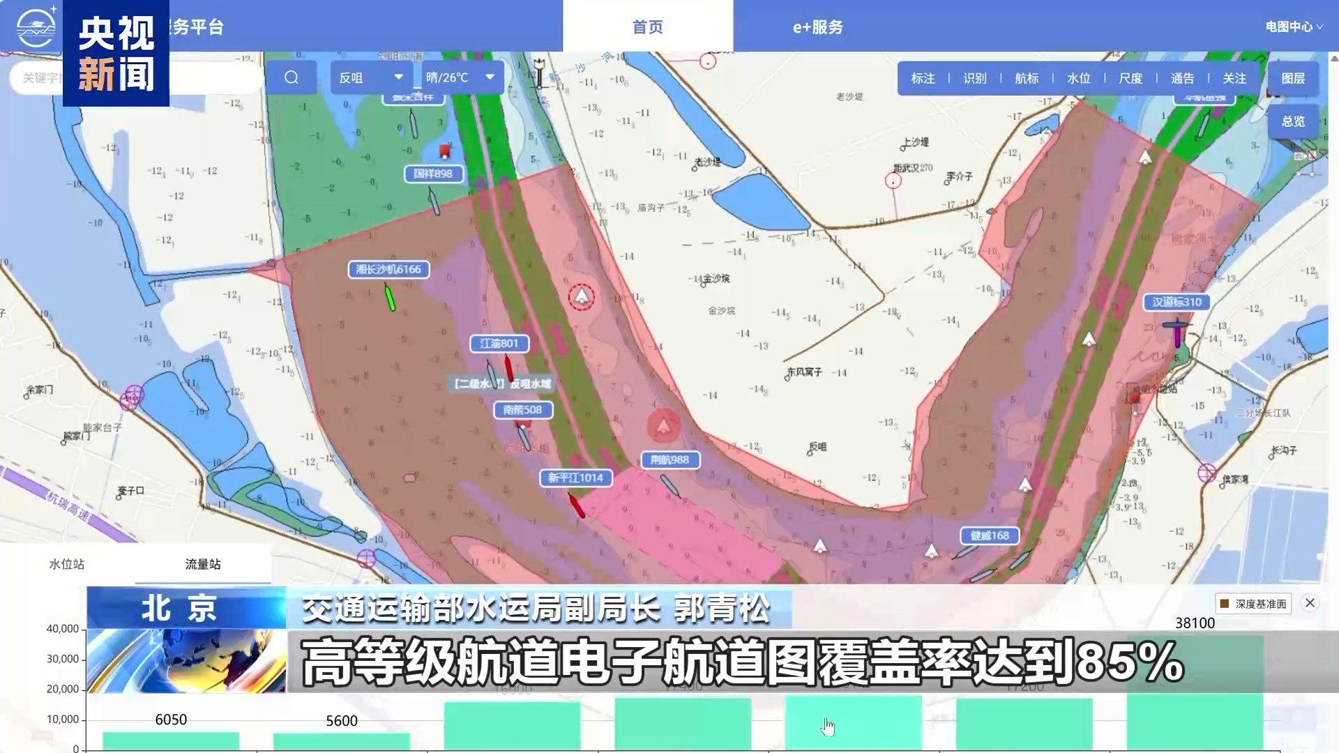 目前,長江干線電子航道圖與京杭運河蘇北段、贛江、漢江等支流航道以及長江口電子海圖實現了互聯互通。長江水系電子航道圖發佈里程已拓展至5606公里。