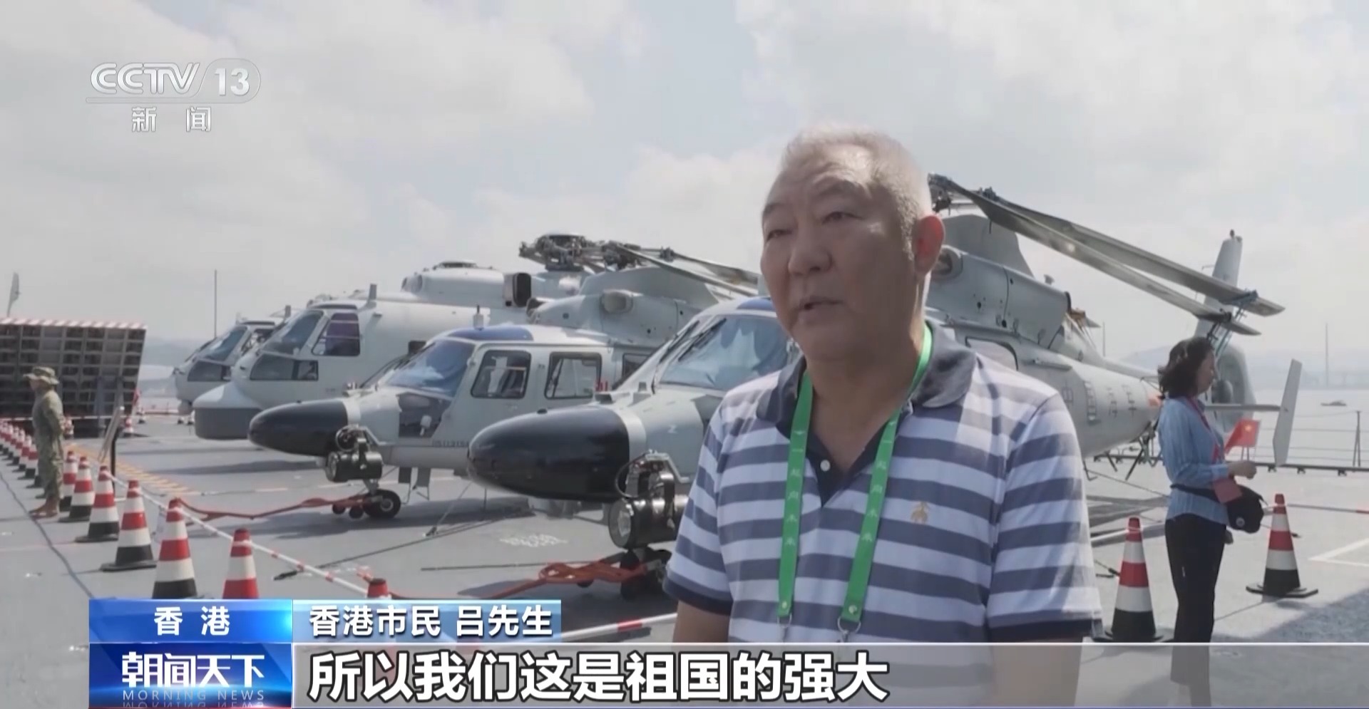 *香港市民 吳英鵬:*這次山東艦編隊蒞臨香港,展現了我們國家維護國家主權安全和發展利益的堅定決心,必將讓更多香港同胞跟祖國同心同行,共同建設好我們的香港特別行政區,建設更加強大富饒美麗的中國。