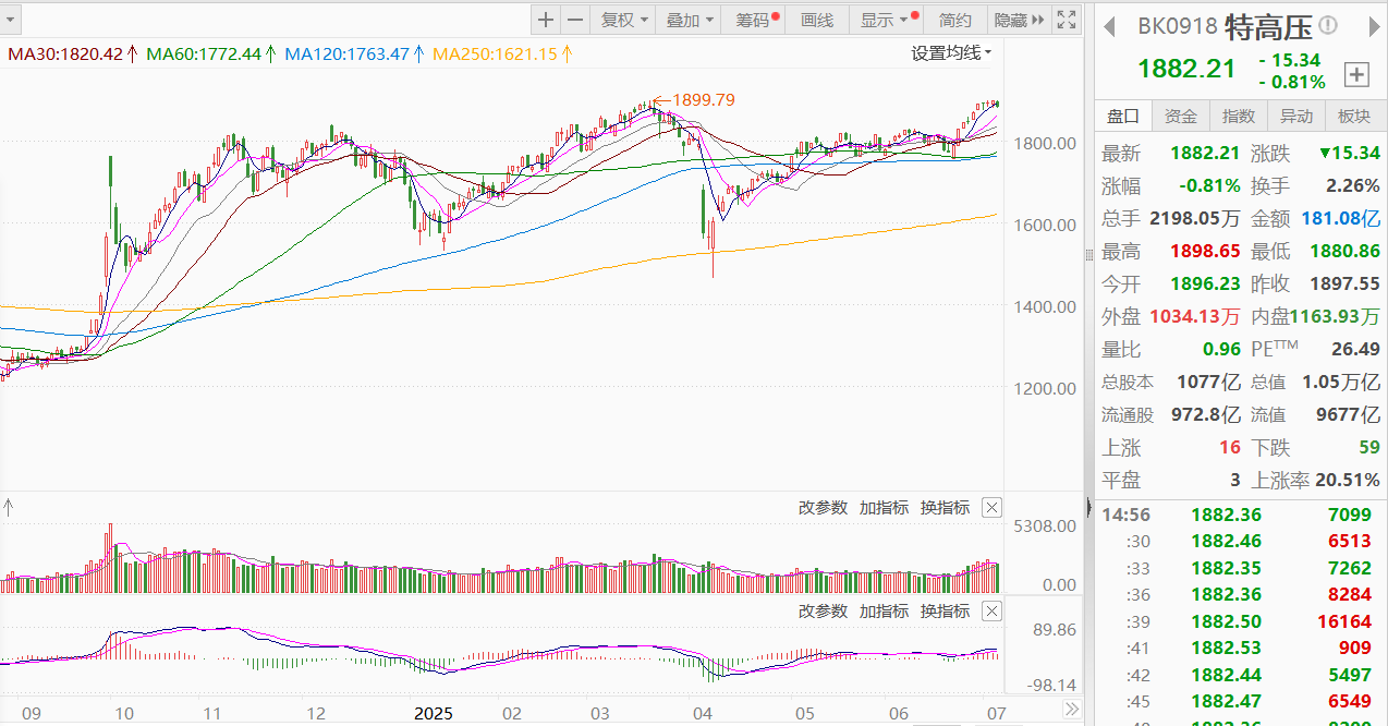 特高壓建設的加速為相關上市公司帶來了發展機遇。統計顯示,截至7月4日,特高壓概念股A股市值合計超7500億元,2025年以來概念股平均上漲1.73%,多股表現亮眼。