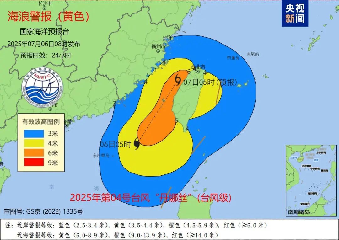 受今年第4號颱風“丹娜絲”的影響,台灣海峽、南海東北部將出現巨浪到狂浪區,福建、廣東、浙江近岸海域海況較差。國家海洋預報台根據《海洋災害應急預案》今天(6日)早上發佈海浪黃色警報和風暴潮藍色警報。