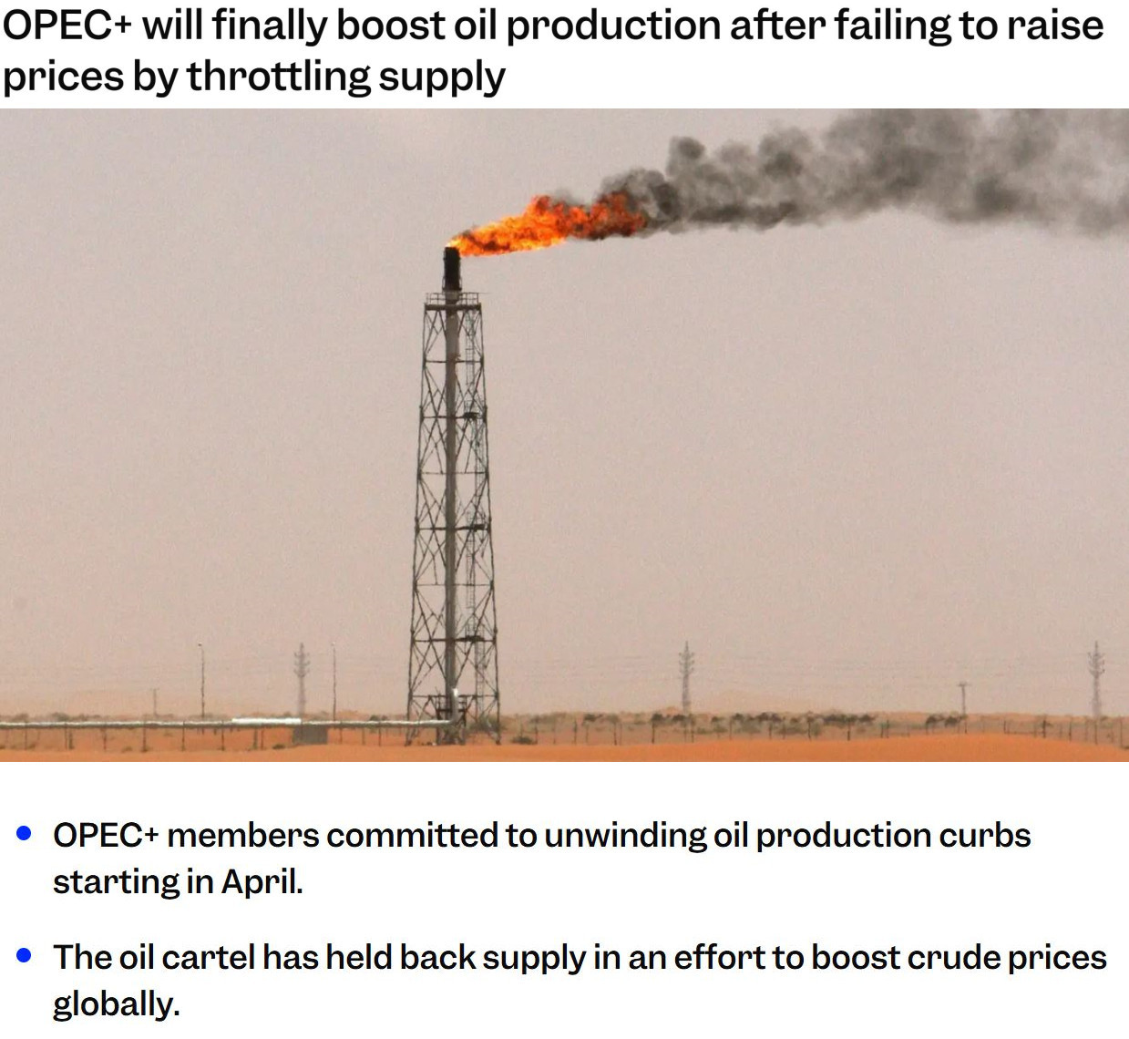 2025年3月,八國決定自4月1日起逐步增加石油產量。