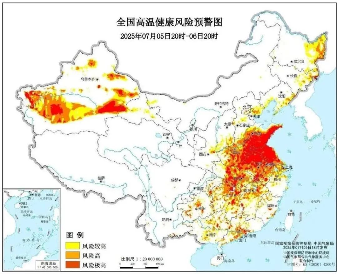 國家疾病預防控制局、中國氣象局7月5日18時聯合發佈高温健康風險預警: