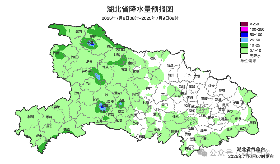 預報來源:湖北省氣象台2025年7月6日08時預報