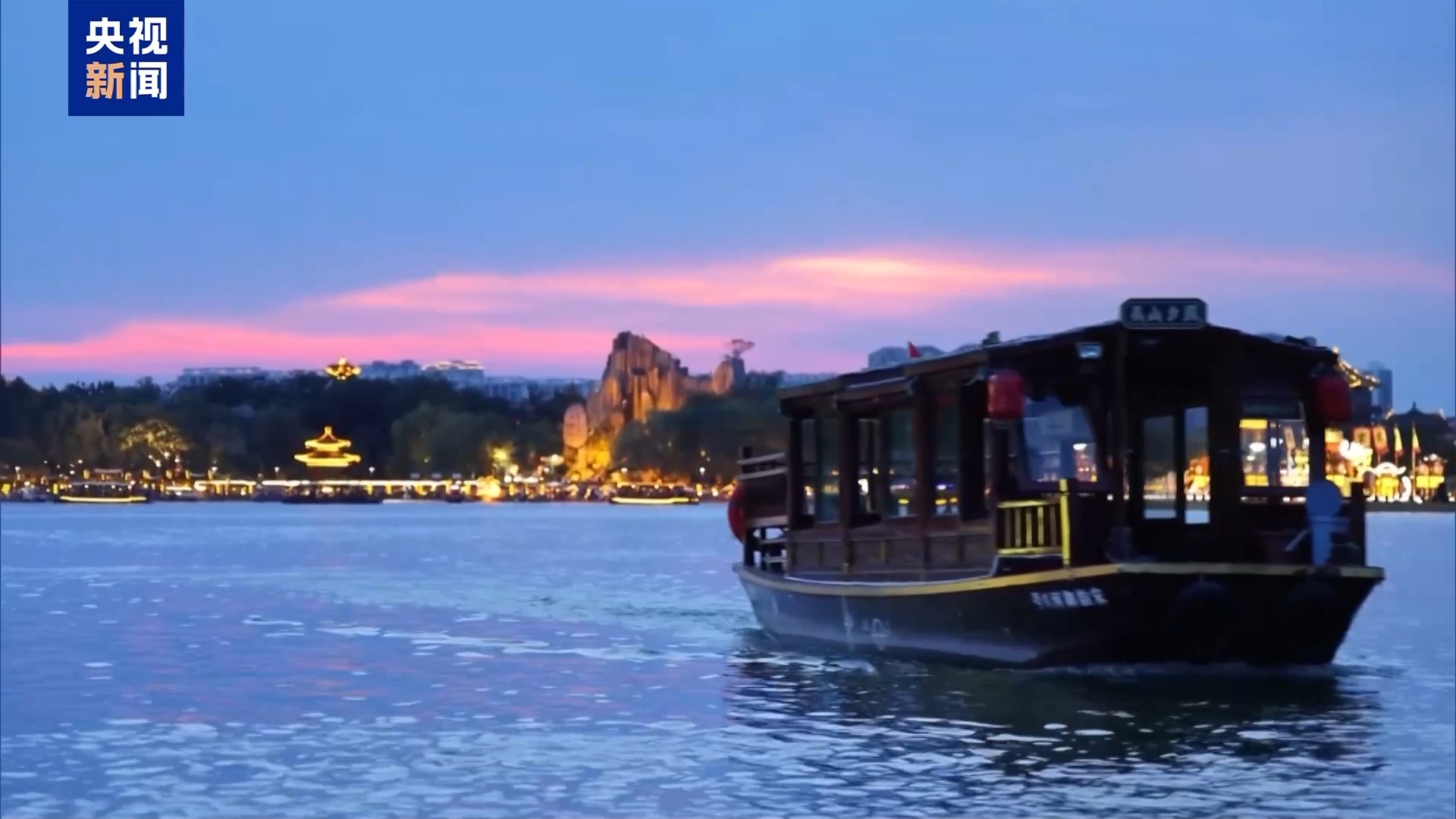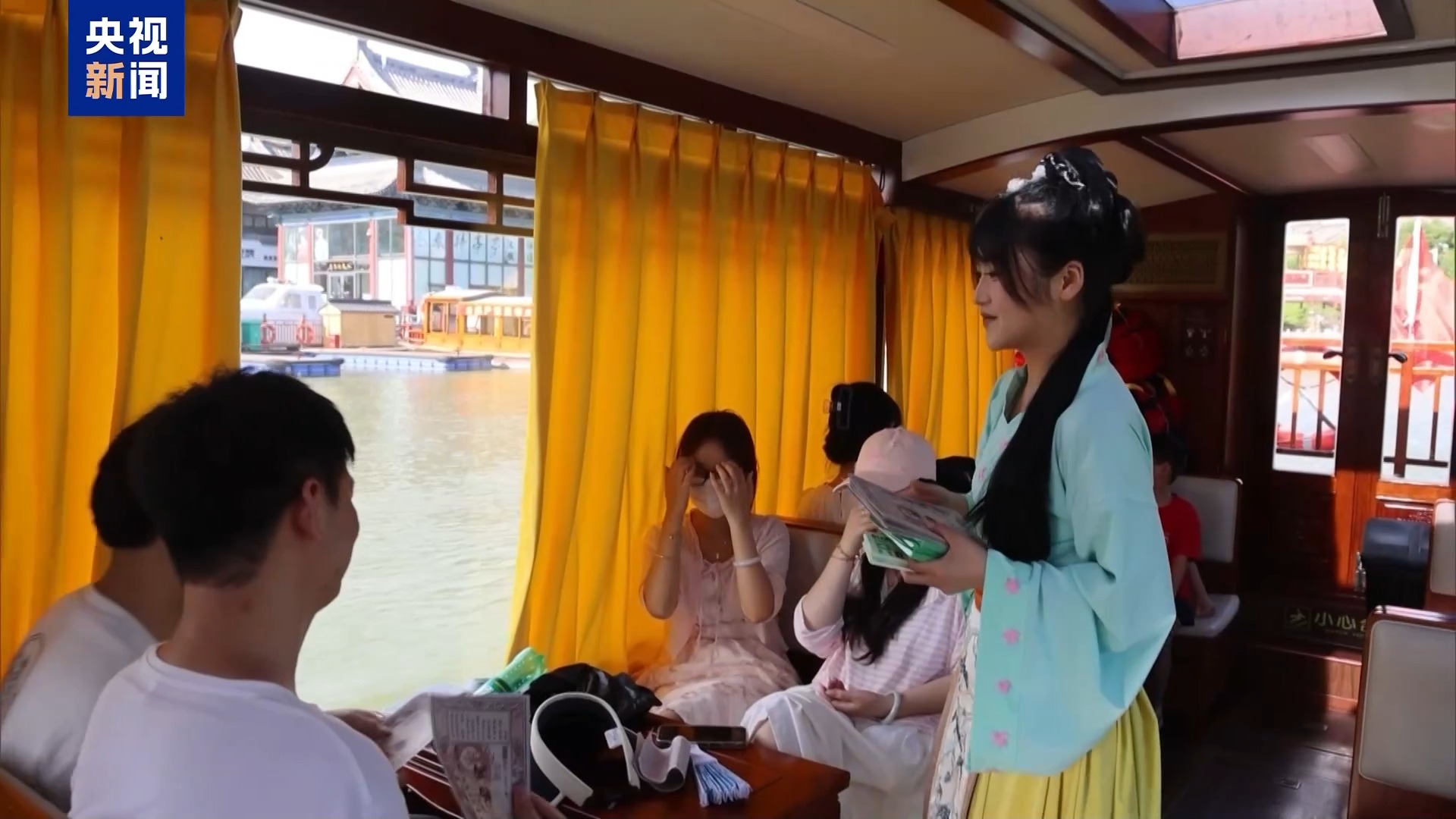 在河南開封,遊客能坐船體驗“宋朝人的一天”,船上設有互動詩詞小遊戲,市內的八大景區通過汴河水道“串珠成鏈”,吸引遊客參與其中。
