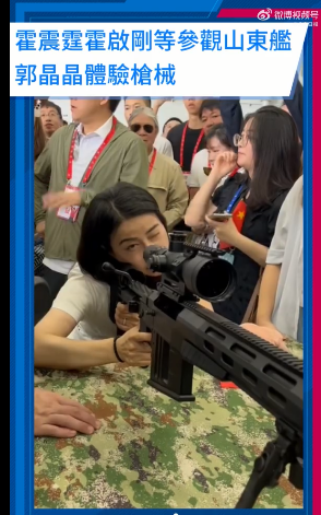 霍啓剛夫婦參觀山東艦,郭晶晶親身體驗槍械操作引圍觀