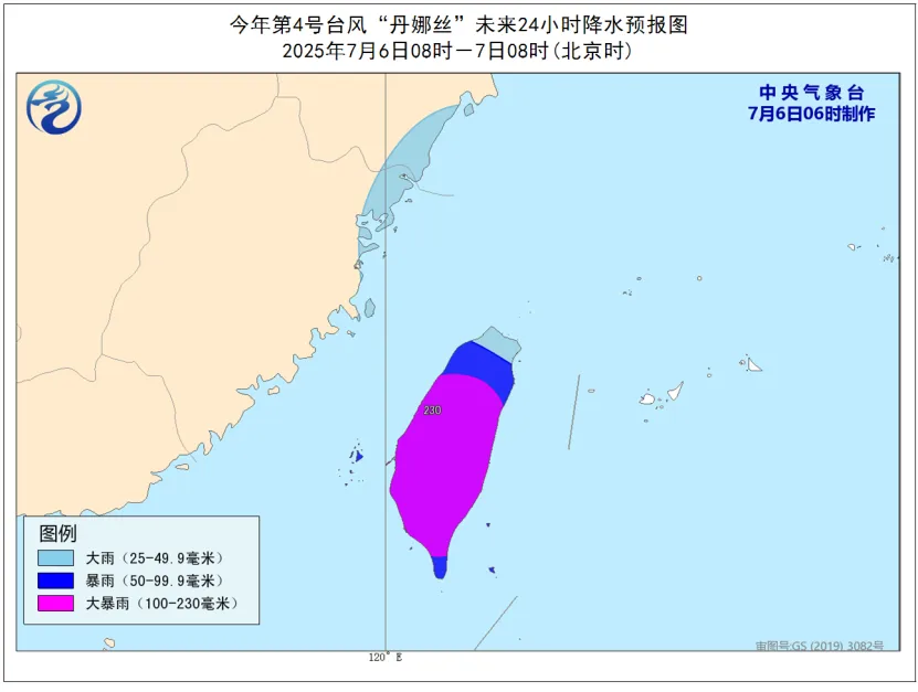 *降水預報:*7月6日20時至7日20時,廣東東部、福建東北部、浙江東南部、台灣島等地部分地區有大到暴雨。其中,浙江南部沿海、台灣島中南部等地部分地區有大暴雨,台灣島南部局地特大暴雨(250~280毫米)。