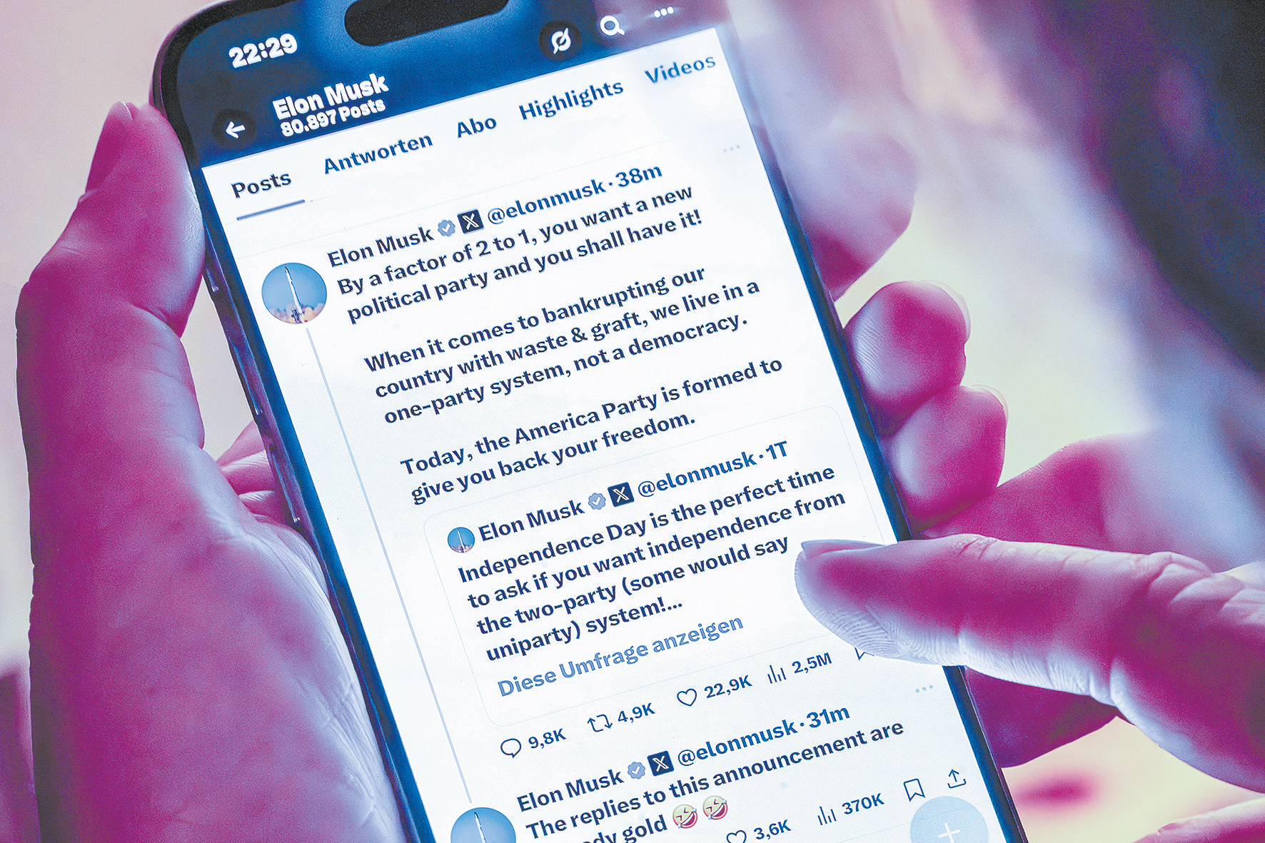 7月4日是美國“獨立日”,馬斯克當天在X平台發起網絡意見調查,問網民是否應該成立“美國黨”,以把美國民眾從民主黨、共和黨輪流上台的兩黨體制中“解放出來”。截至5日他再次發帖時,共有超過124.9萬網民參與投票,支持者佔65.4%,反對者為34.6%。馬斯克寫道:“支持和反對比例為2:1,表明你們想要一個新政黨,你們也會有個新政黨。”他稱,美國“正因浪費和貪污而破產”。