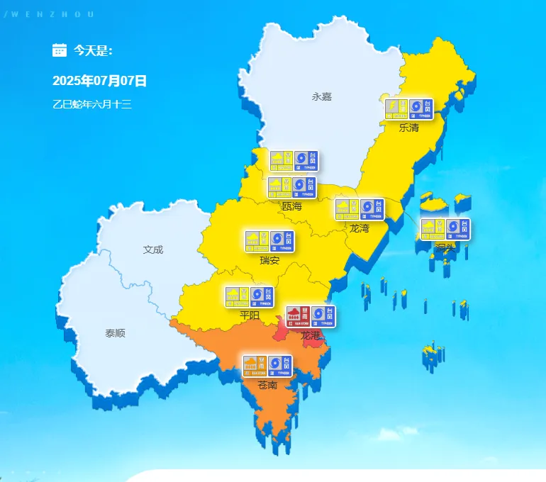 温州市氣象台7月7日7時發佈的颱風警報和天氣預報