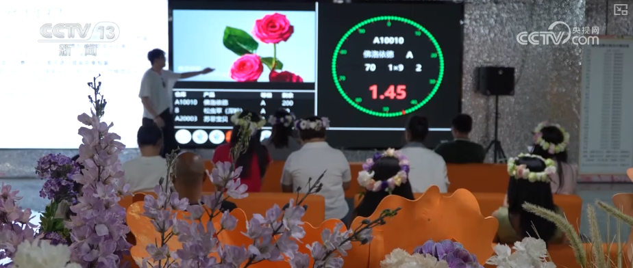 “遊客專供版”的鮮切花拍賣也採用了“荷蘭式降價拍賣”,大家藉助和系統相連的手機小程序進行操作。心儀的鮮切花出現,大屏幕上的指針開始飛快地從高價向低價轉動。第一個出價的人達成交易,這讓拍賣時機變得非常微妙,十分考驗大家的眼力和手力。和大宗交易相比,這裏的場地和規模都相對“迷你”,但是緊張的氛圍是一點不少。