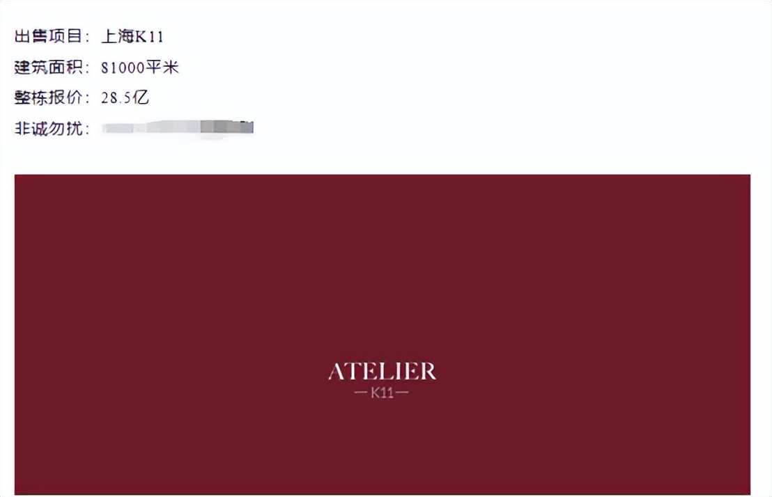 【環球網財經綜合報道】據媒體報道,新世界發展正對外出售上海淮海中路K11物業寫字樓部分(11樓到58樓)。某公眾號披露,該物業建築面積約8.1萬平米,整棟售價28.5億元。K11購物藝術中心位於1至10樓,上海香港新世界大廈項目總建築面積11.6萬平方米,商辦樓面超10萬平米,其中K11購物藝術中心樓面面積35474平方米,寫字樓面積80549平方米。