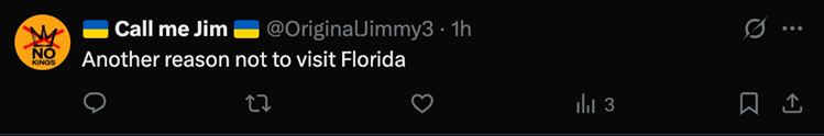 有網友吐槽説,“有了不去佛羅里達的另一個理由。”