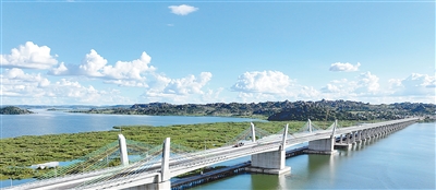 由中國企業承建的馬古富力大橋今年6月正式通車。該橋是連接坦桑尼亞與盧旺達、布隆迪、烏干達等國的重要樞紐。圖為馬古富力大橋。