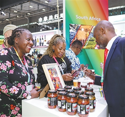 6月12日,在第四屆中國—非洲經貿博覽會上,參觀者在南非展台諮詢。