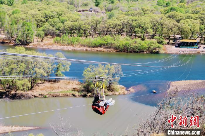圖為遊客在洮兒河國家濕地公園暢玩滑索。興安盟融媒體中心供圖