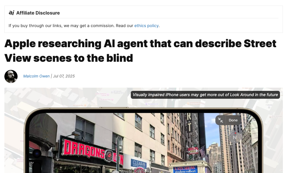 蘋果聯合哥倫比亞大學推出的SceneScout已進入測試階段