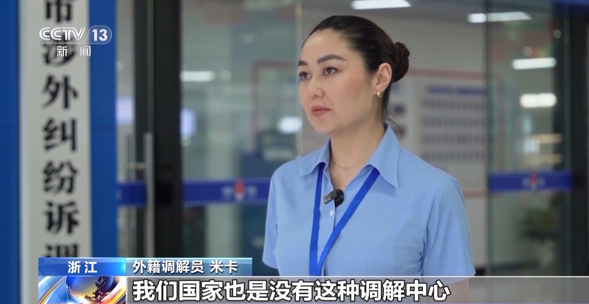 在浙江省義烏國際商貿城這個熙熙攘攘的國際小商品市場裏,有一個特別的人民調解委員會,專門調解涉外矛盾糾紛。調解室裏,吉爾吉斯斯坦籍調解員米卡正和中國調解員一起,為烏茲別克斯坦籍採購商與義烏商户鄭女士調解一個買賣合同糾紛。