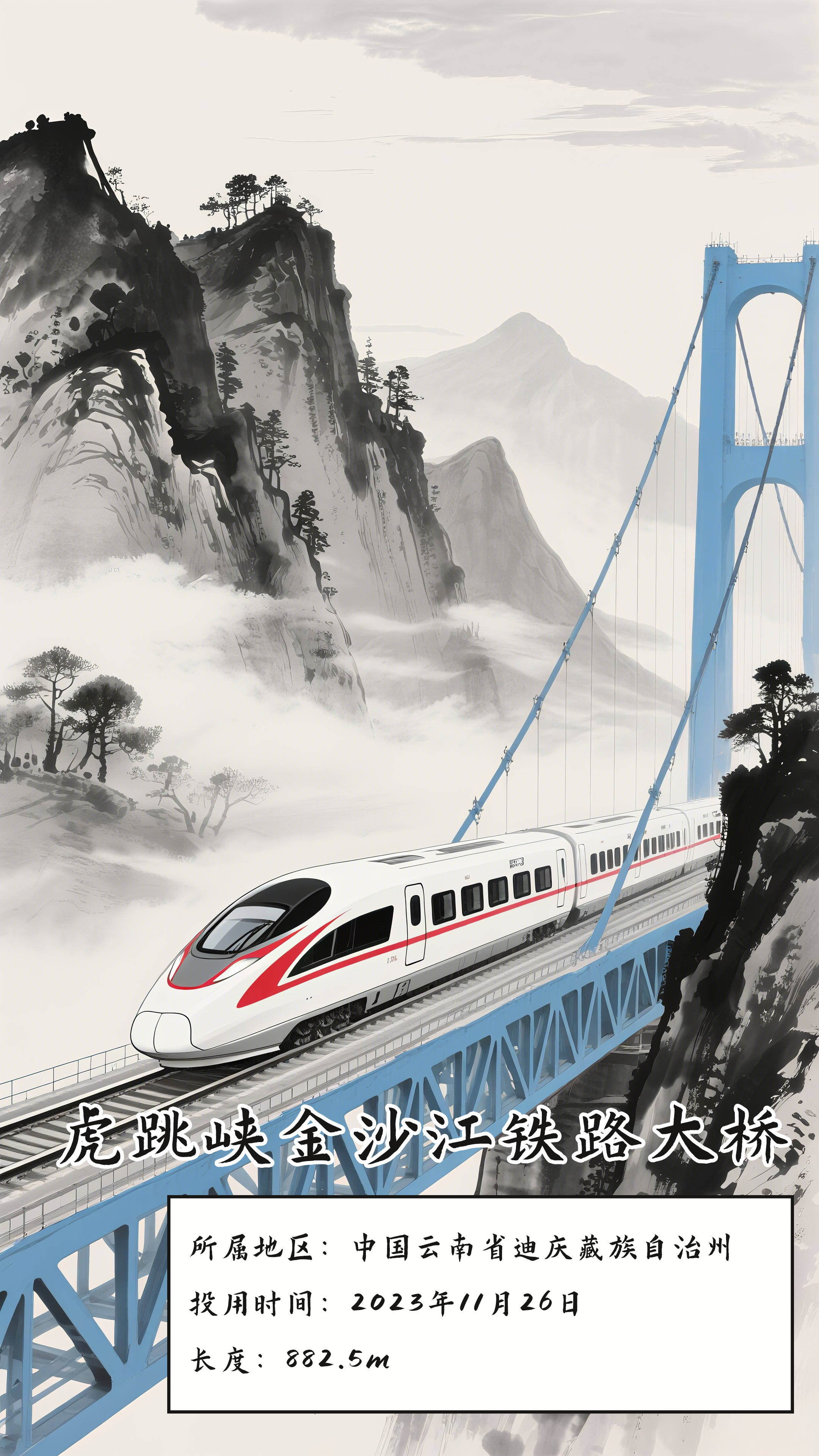 麗香鐵路虎跳峽金沙江鐵路大橋,作為世界首座大跨度鐵路專用懸索橋,全橋由71個節間鋼桁梁拼裝組成,跨越金沙江天塹,讓麗香鐵路串起“彩雲之南”的多個旖旎風光,帶旅行者一起追尋“詩和遠方”。