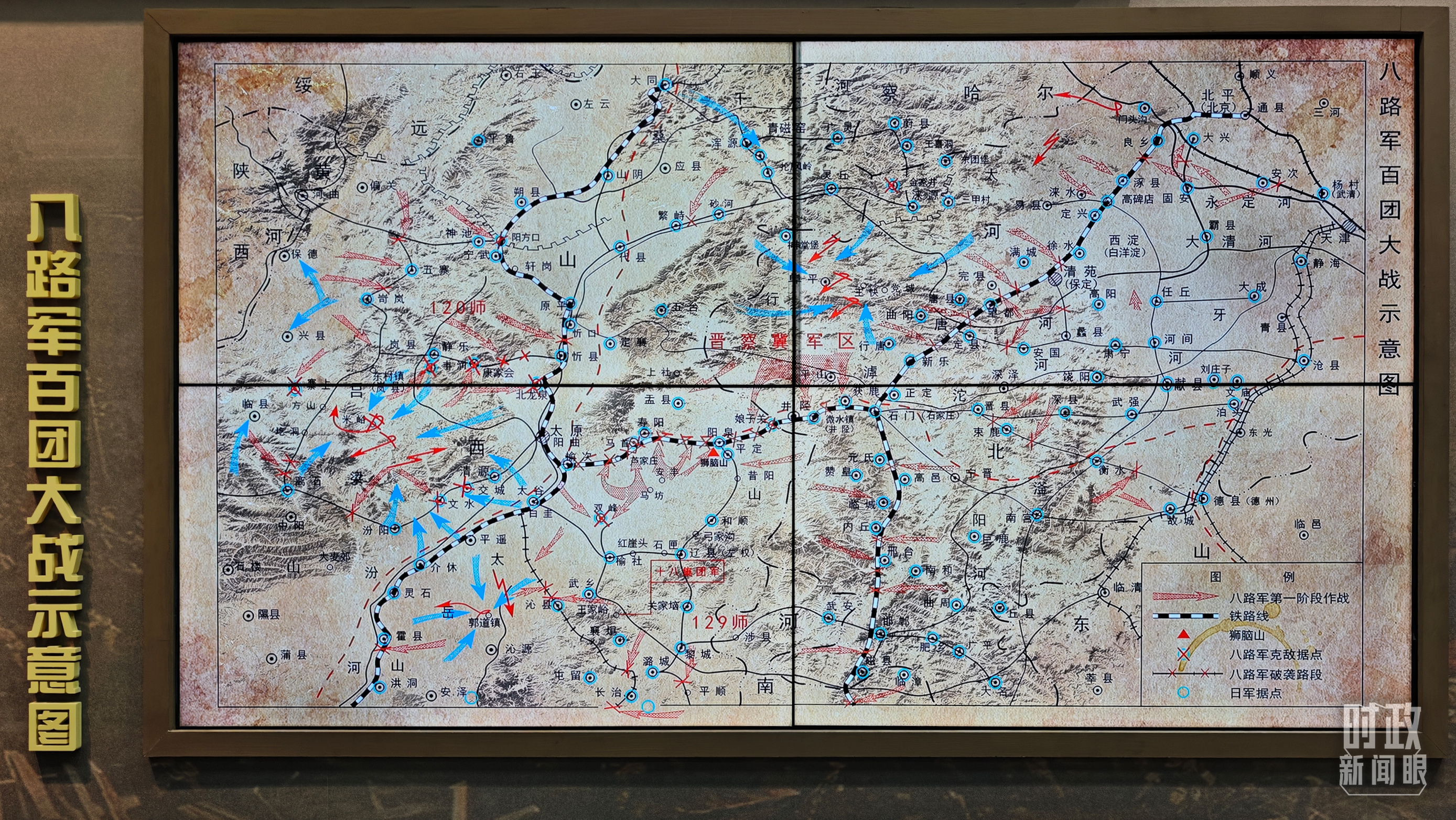 百團大戰紀念館在1995年落成,是全國唯一一座以百團大戰為主題的紀念性場館。總書記來到百團大戰紀念館,緬懷抗戰烈士英雄事蹟,重温中國共產黨領導抗日軍民同仇敵愾、勇御外侮的光輝歷史,瞭解當地開展革命歷史教育、傳承弘揚偉大抗戰精神等情況。