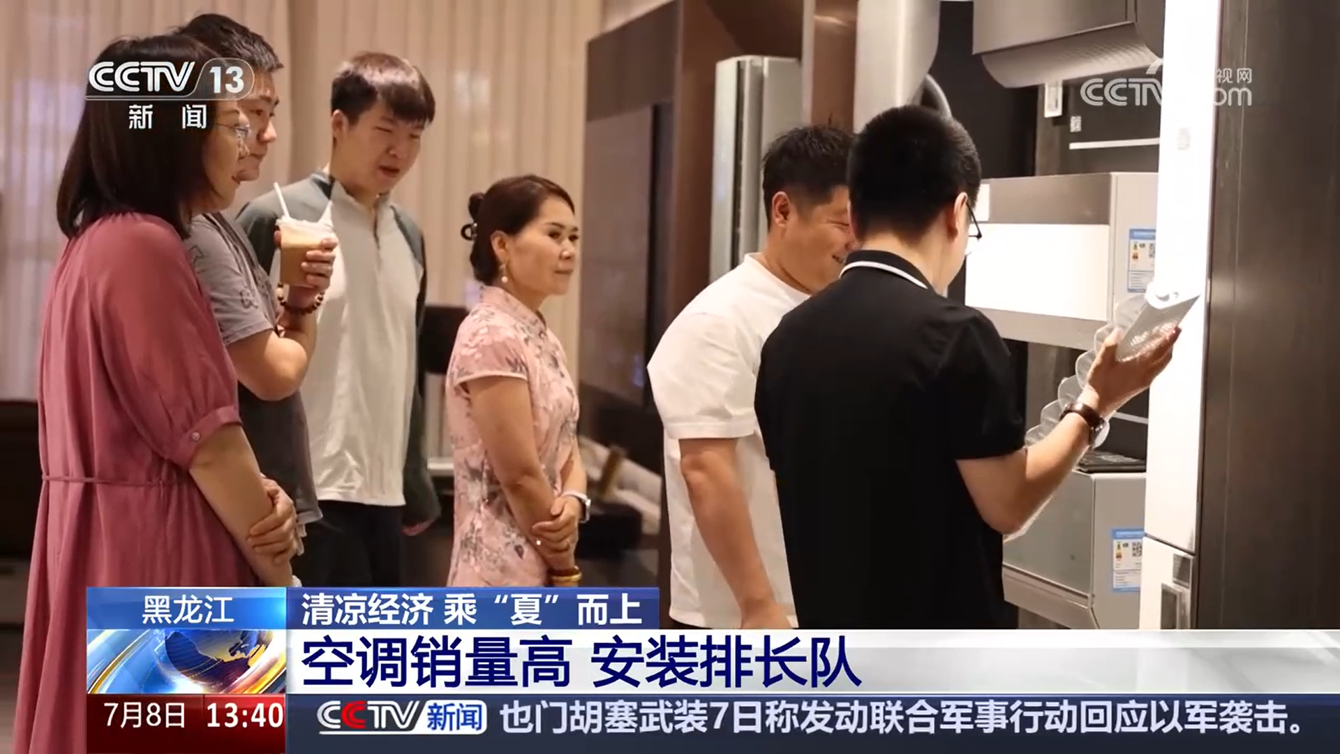 在哈爾濱市道里區的另外一家商場,空調銷售同樣火爆。工作人員告訴記者,空調銷售走俏,空調安裝師傅也忙得不可開交。平時從下單到安裝最多隻需要三天,但是現階段空調安裝訂單已經排到了7月末。