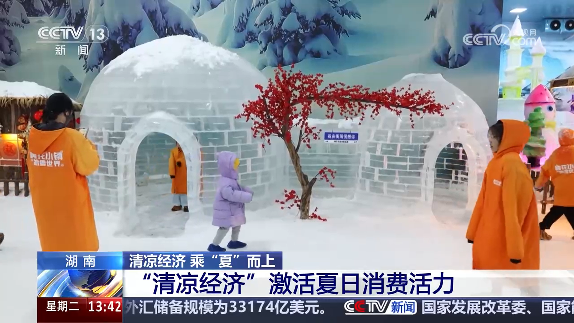 在湖南衡陽縣西渡鎮梅花村,這家室內冰雪遊樂園成為當地暑期熱門打卡地,紛飛飄落的雪花與冰城堡、雪屋相映成趣,打造出一個美輪美奐的冰雪童話世界。遊客們不僅能在各式各樣的冰雕前拍照打卡,還能體驗從冰滑梯上飛馳而下的快感,盡情享受一秒入冬的冰爽體驗。