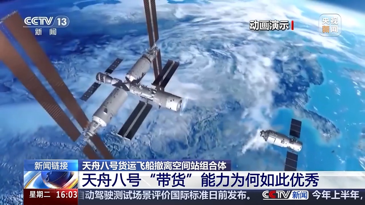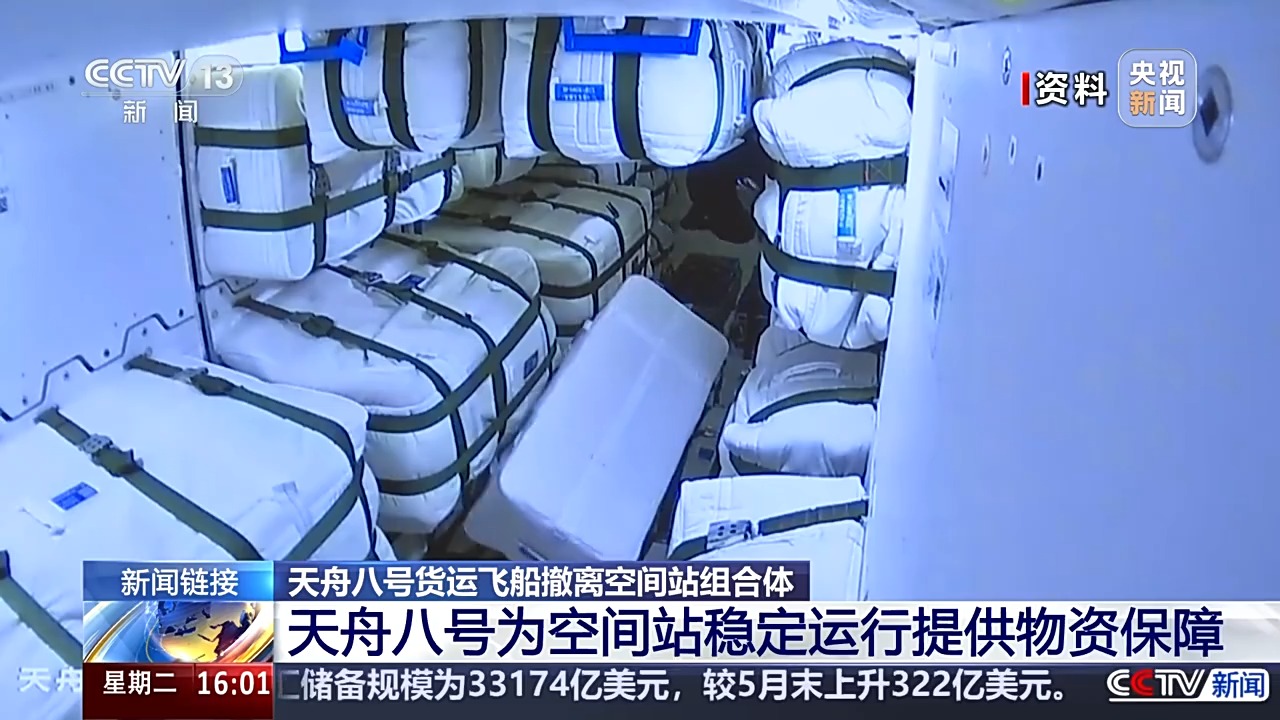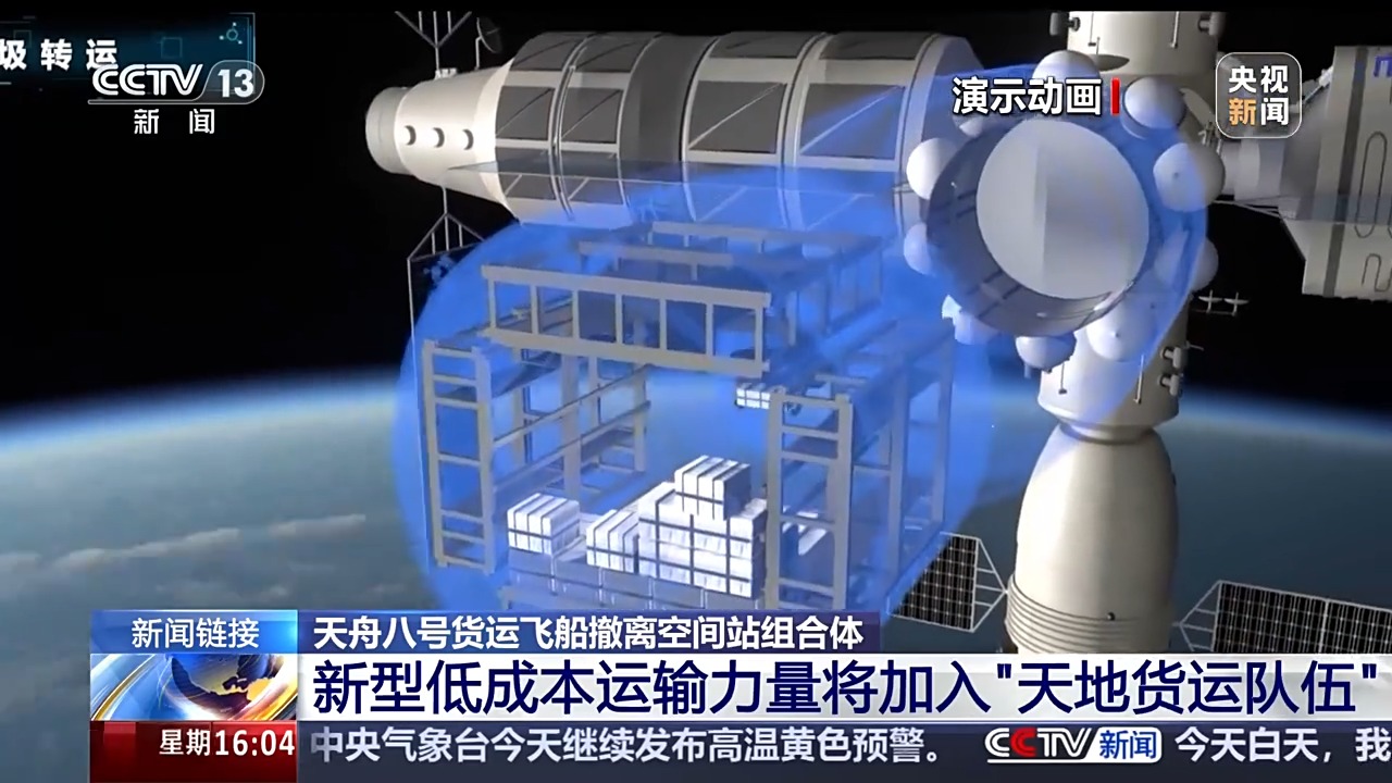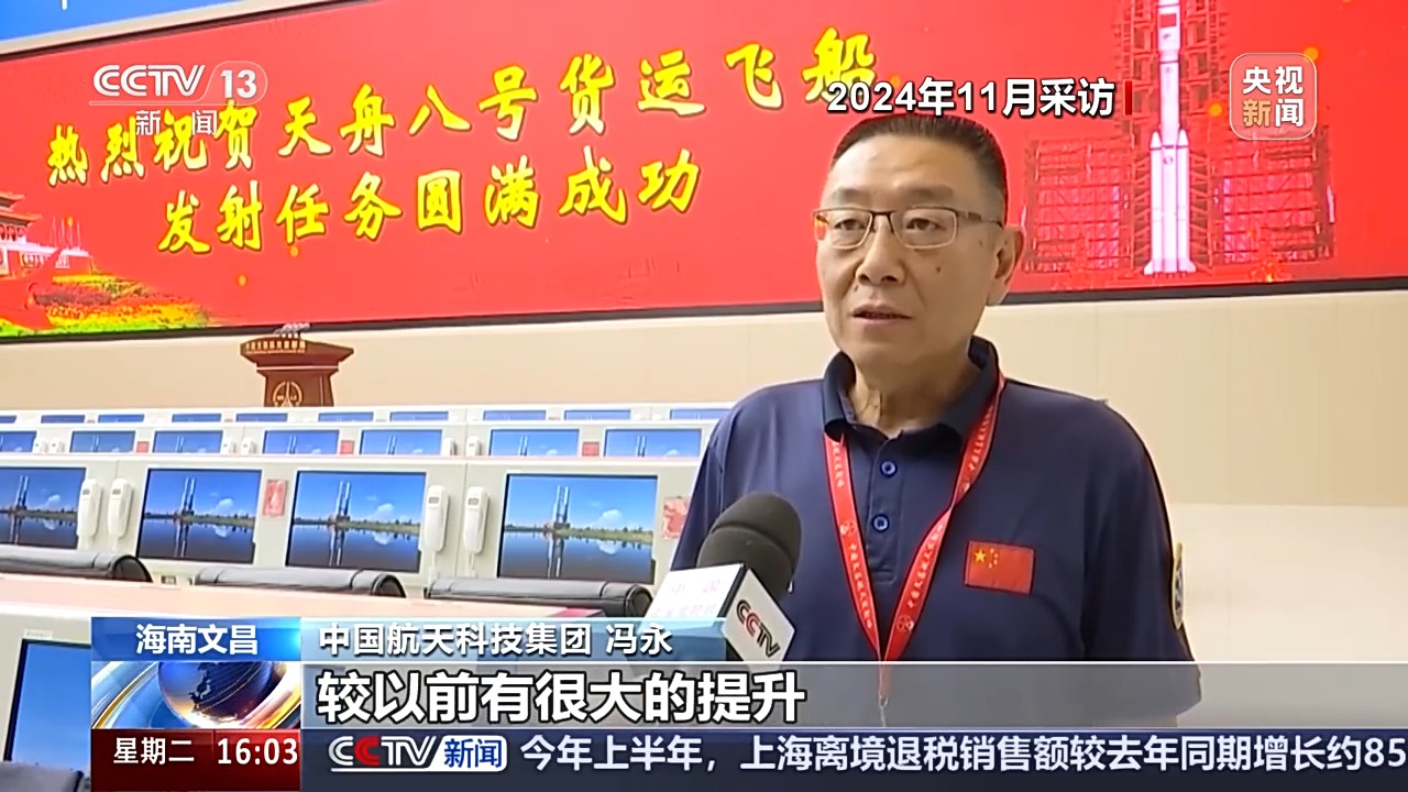 *中國航天科技集團 馮永:*天舟八號貨運飛船相對於天舟七號在發射之前裝貨的能力較以前有很大的提升,那麼主要是為了運送一些時效性很強的貨物,為咱們空間站在軌進行科學實驗提供了一個很大的技術支撐。比如説一些生物製劑、細胞裝置培養等等這樣的一些科學項目有很大的一個幫助。