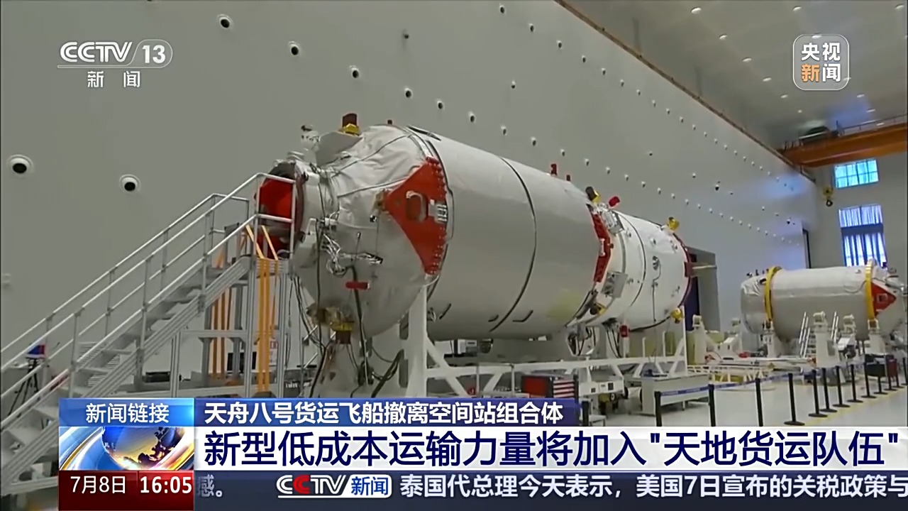 北京時間2025年7月8日15時9分,天舟八號貨運飛船順利撤離空間站組合體,轉入獨立飛行階段,將於近期擇機受控再入大氣層。天舟八號貨運飛船於2024年11月15日在文昌航天發射場發射入軌,共計在軌運行近八個月,為神舟十九號、二十號乘組提供了物資保障。通過短片,一起回顧天舟八號的任務過程。