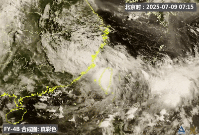 7月9日早上7點前後的FY-4B/GHI可見光全色雲圖顯示:受颱風“丹娜絲”登陸影響,福建東部對流發展旺盛