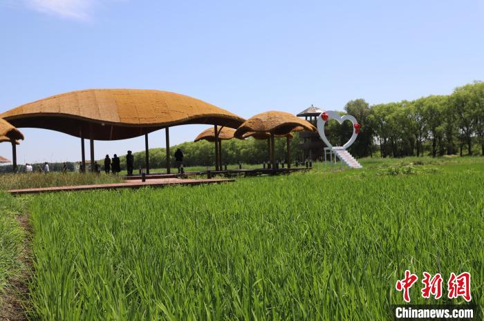 在“稻夢空間”,300多畝的水稻田成為網紅拍照打卡點;稻米水系沿岸的特色民宿街上,遊客們體驗手工製茶。