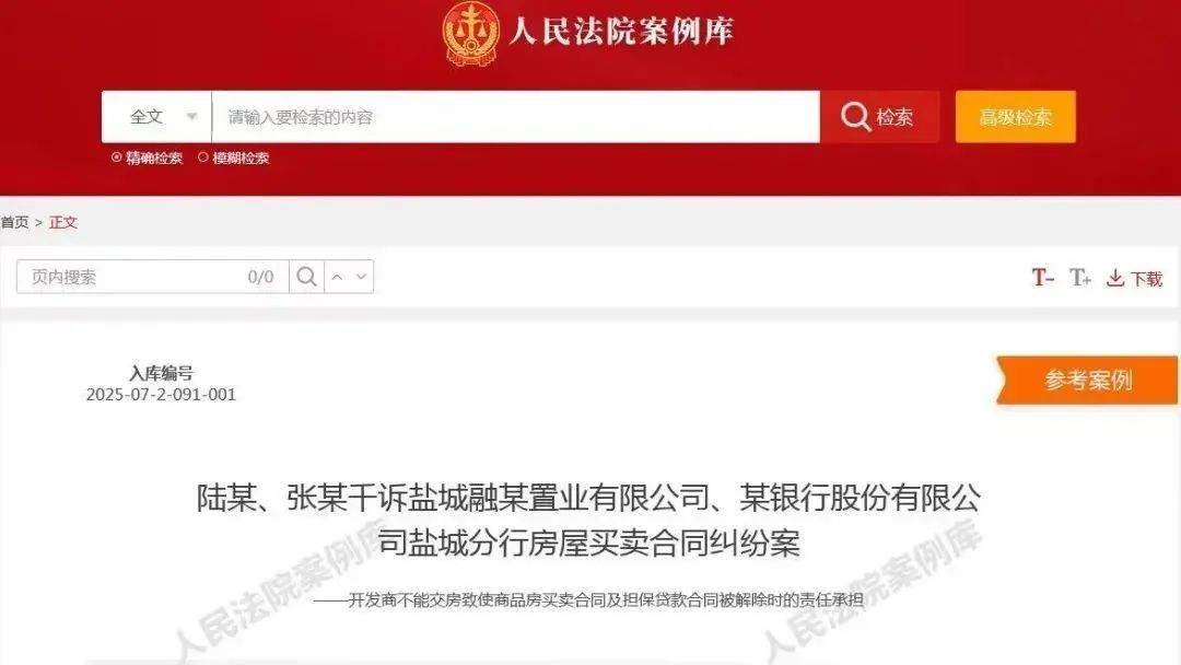近日,鹽城市中院審理的陸某、張某千訴鹽城融某置業有限公司、某銀行股份有限公司鹽城分行房屋買賣合同糾紛案入選人民法院案例庫。