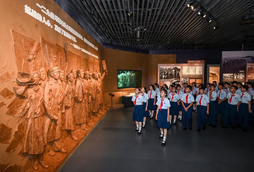今年是中國人民抗日戰爭暨世界反法西斯戰爭勝利80週年。7月7日,正在山西陽泉市考察的習近平總書記來到百團大戰紀念碑廣場,向百團大戰烈士敬獻花籃,參觀百團大戰紀念館,緬懷抗戰烈士英雄事蹟。在紀念館大廳,他同青少年學生和紀念館工作人員親切交流。