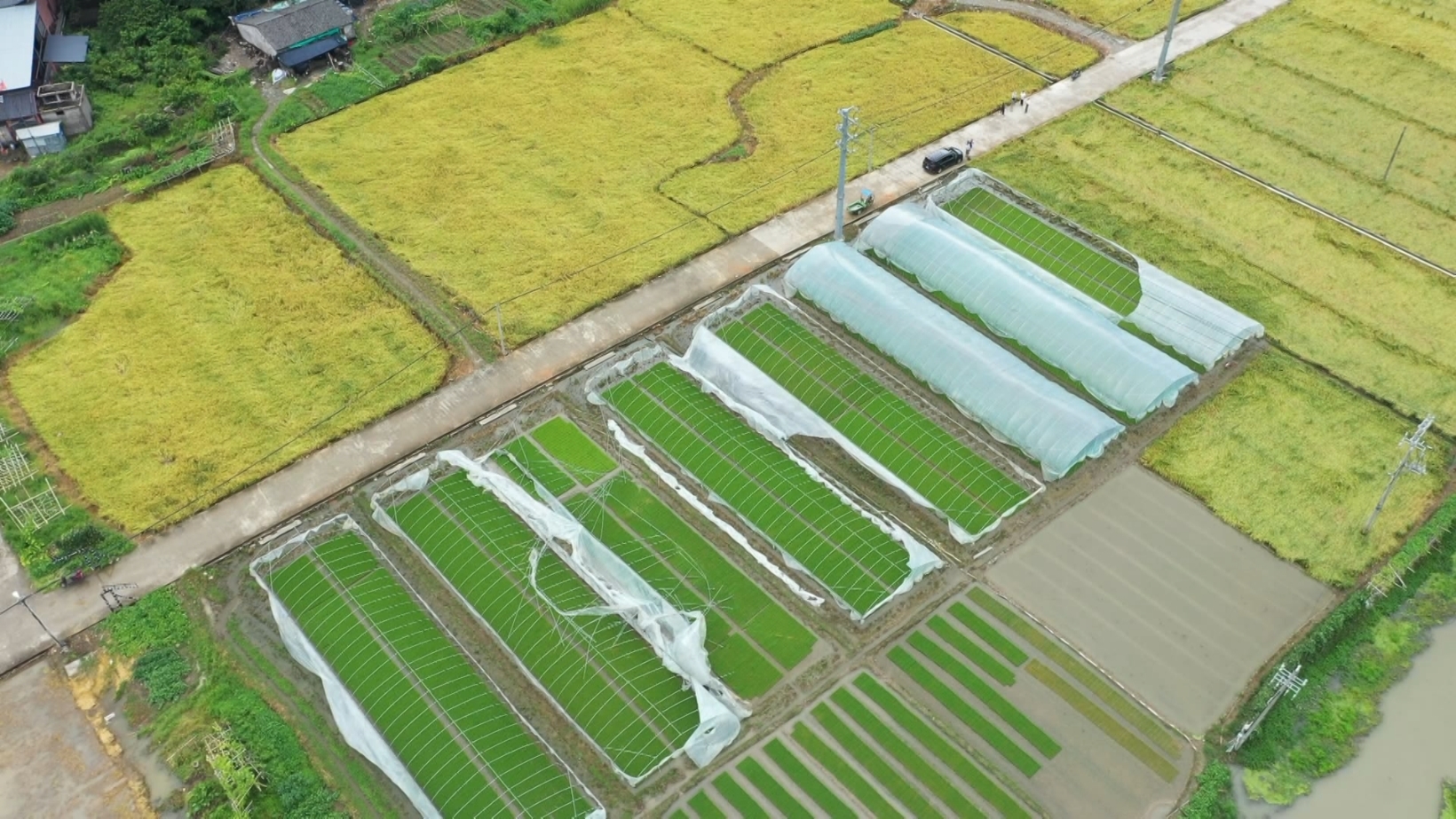 現場,大棚倒塌、薄膜被吹翻,成片的成熟早稻貼伏在地面。種植户周永乾踩着泥濘,忙不迭給稻田排水,滿臉焦急。“今年長勢比前幾年都好,平均畝產一千斤以上,開始都高興的很,沒想到快收割的時候刮颱風。我們一夜都沒睡,在家裏睡不着,現在只剩下山邊的四十來畝稻子,其他的都倒平了。”
