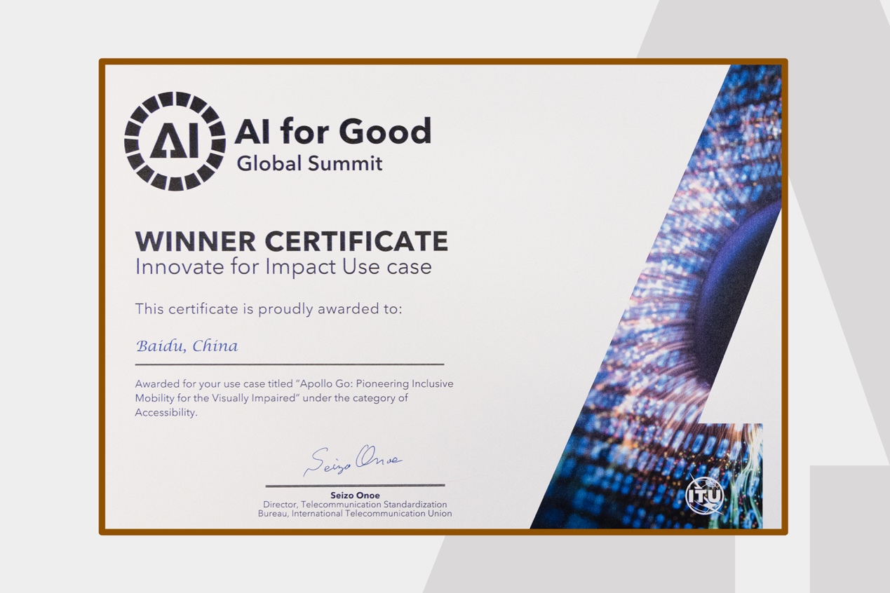 “蘿蔔快跑為視障人士提供了充滿包容性的出行新方案。”人工智能向善全球峯會評委會特別指出。