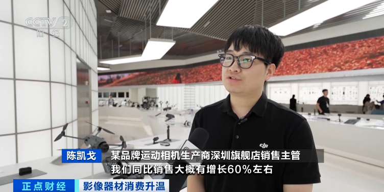某品牌運動相機生產商門店銷售主管 陳凱戈:我們同比銷售大概增長60%,有很多20多歲的年輕羣體逐漸會選擇我們。目前對於運動相機的增長還是持比較樂觀的態度,因為現在運動的場景越來越豐富。