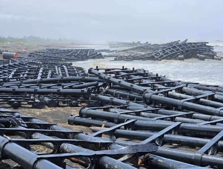 【環球時報綜合報道】一場颱風讓民進黨當局的光電政策現了原形。颱風“丹娜絲”侵襲南台灣,大浪摧毀位於屏東佳冬外海的太陽能光伏系統漂浮式平台設施,大量被打散的支架遍佈岸邊(如圖)。