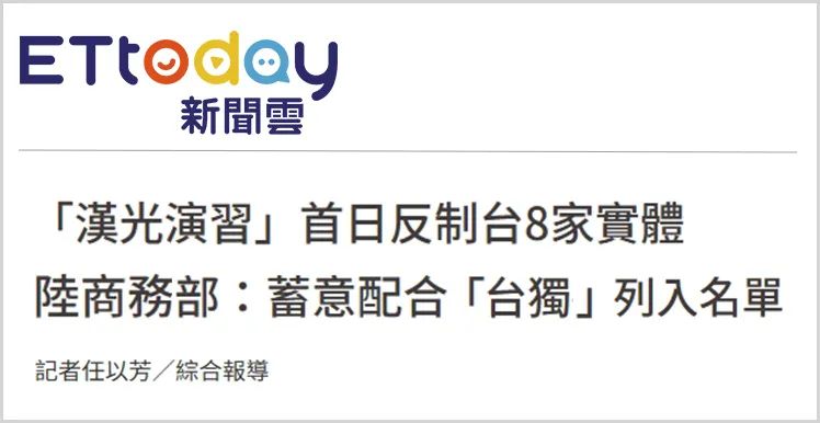 譚主注意到,這些消息震撼島內。“引新聞”以“陸重手出擊”為題報道指出,這項措施是大陸官方首次以“國家安全與防擴散義務”為由,針對多家台灣防務與航太產業相關實體實施出口限制,是對台加強經貿與軍工領域的管制手段。ETtoday新聞雲注意到商務部發言人表態中稱這些實體“蓄意配合‘台獨’”,並分析稱大陸在台軍“漢光41號演習”實兵演練首日公佈管制島內軍工實體名單,“反制意味濃厚”。