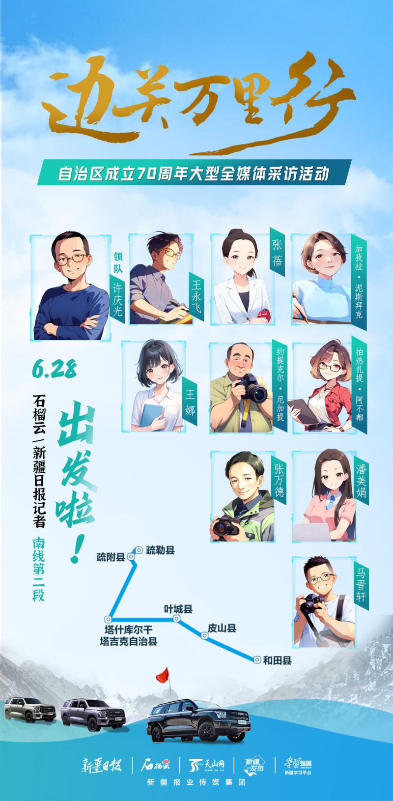 石榴雲/新疆日報訊(記者 張萬德攝影報道)從6月29日開始,“邊關萬里行——自治區成立70週年大型全媒體採訪活動”南線採訪團隊先後前往喀什市、疏附縣、疏勒縣、伽師縣、塔什庫爾干塔吉克自治縣、葉城縣等地進行採訪。從喀什古城到農家小院,從城區到工業園區,從邊境派出所到紅其拉甫國門……記者們一直在路上記錄70年來的發展變遷。