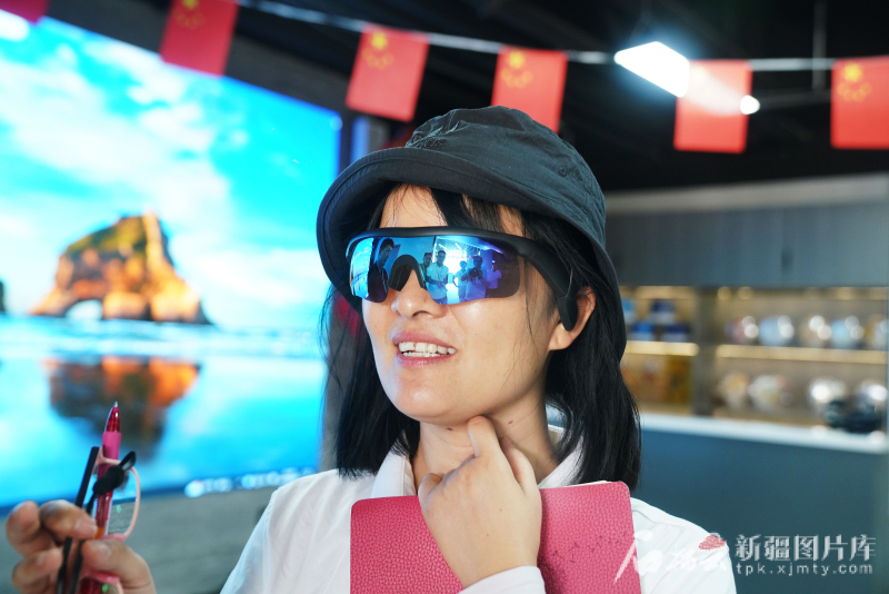 6月30日,在喀什綜合保税區全球貿易通新疆喀什中亞出口商品選品中心,記者王娜體驗了一款出口的智能眼鏡,該眼鏡可隨機翻譯一百多種語言。
