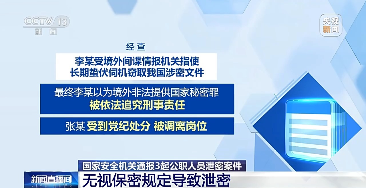 近年來,境外間諜情報機關對我國開展滲透竊密活動愈發活躍,個別公職人員被圍獵,造成失泄密,損害國家安全和利益。今天(10日),國家安全機關通報了3起公職人員泄密案件。