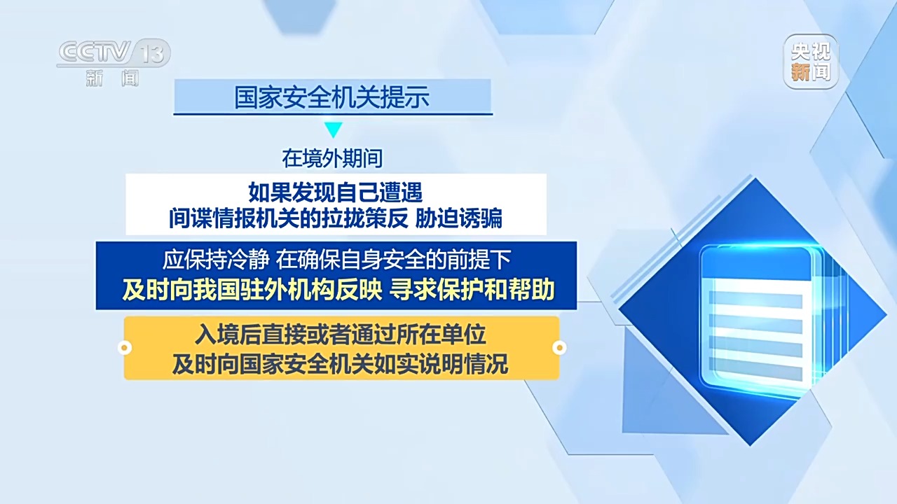 對於這些境外間諜情報機關的拉攏策反,應當如何應對?來看國家安全機關的提示。