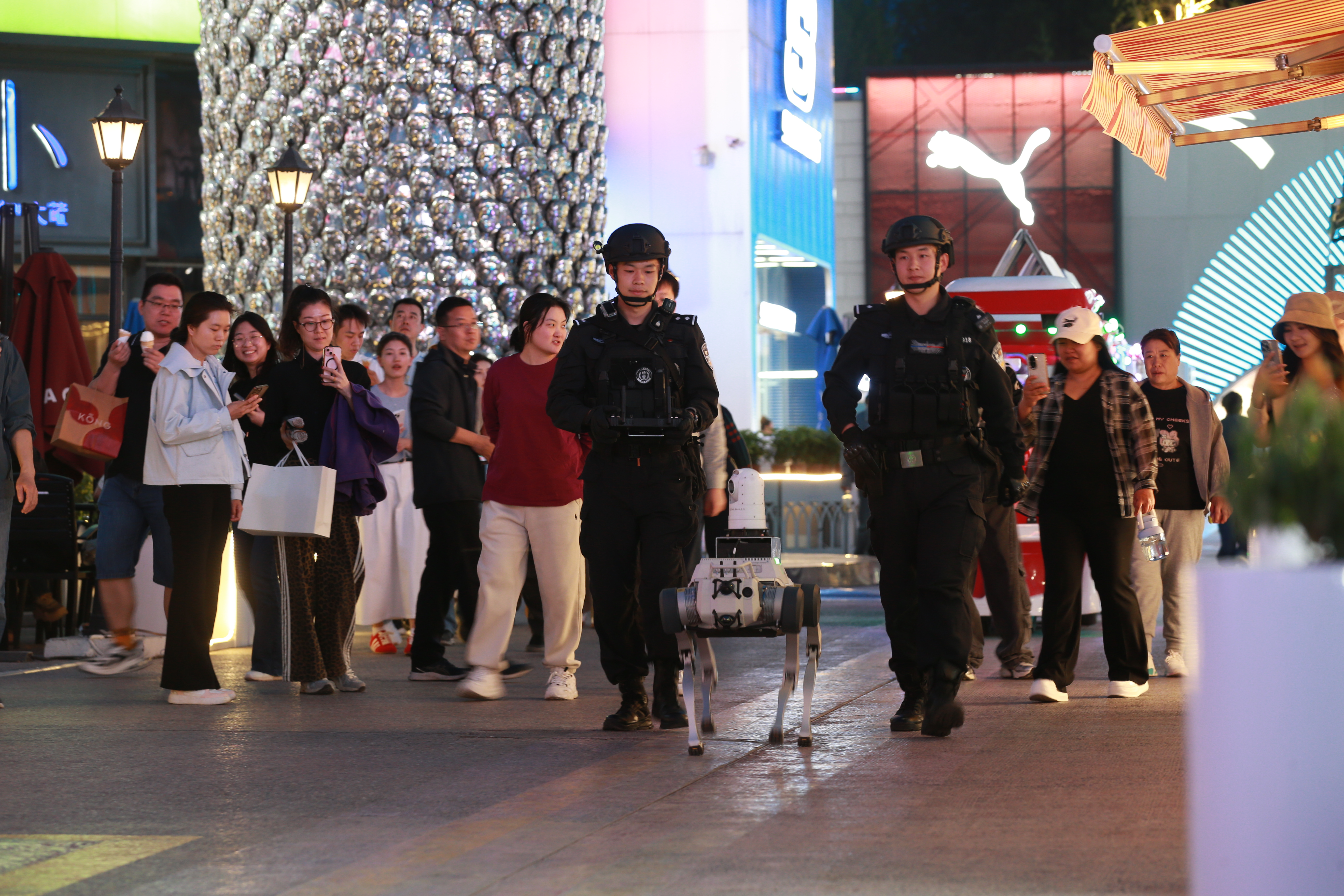 “晚上來華熙逛街,總能看到民警們的身影,讓我們老百姓感到特別安心。”一位常去華熙商圈的市民,仔細端看着民警身旁的機器狗,忍不住豎起大拇指點贊。