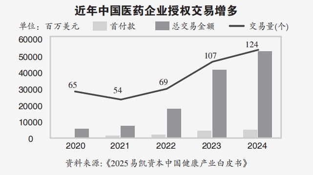 《華爾街日報》援引生物醫藥行業研究機構DealForma的數據説,2020年中國在5000萬美元以上的醫藥交易中佔比不足5%,而到2024年這一比例已上升至近30%。